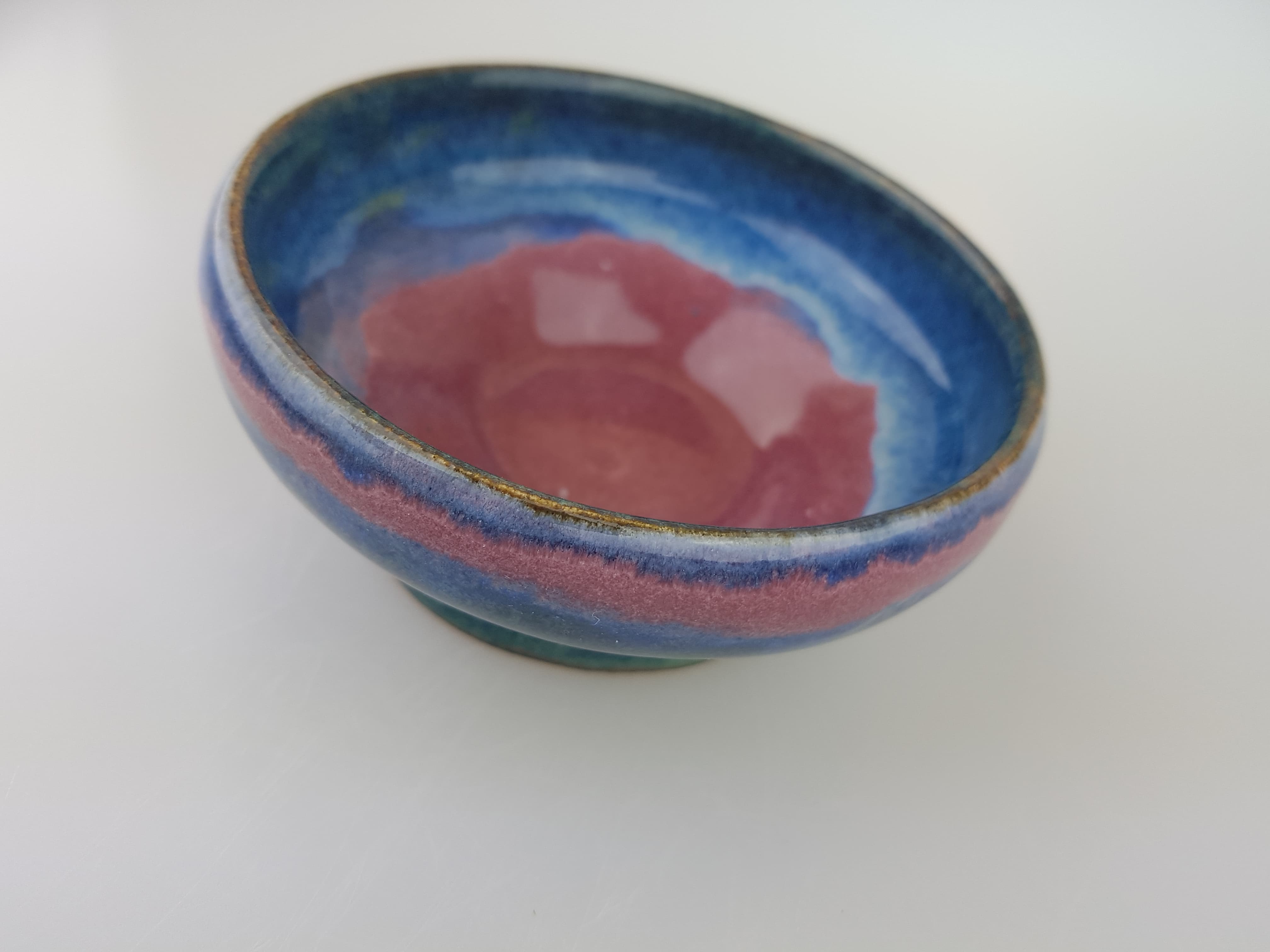 Miseczka toczona na kole i wypalona na kamionkę. Użyte szkliwa nadają się do kontaktu z żywnością. Miseczka może służyć zarówno jako naczynie kuchenne (na dipy lub drobne przekąski typu oliwki) jak również do palo santo czy do przechowywania biżuterii.